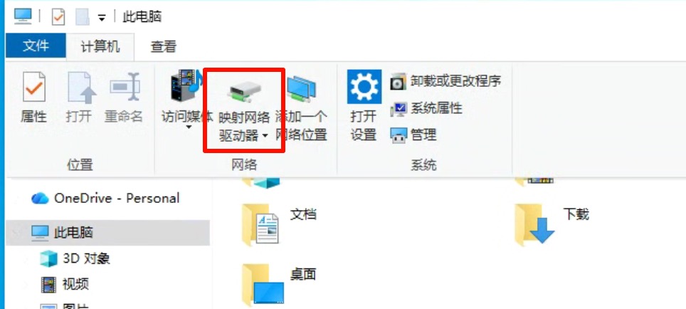 - 点击顶部菜单的【计算机】→【映射网络驱动器】