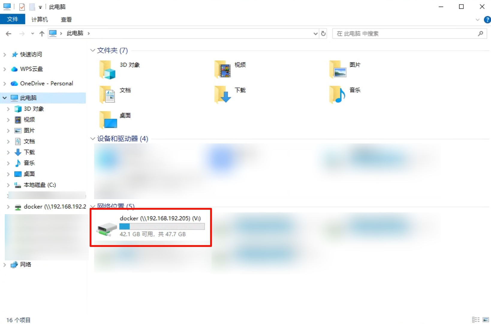 成功连接后,你会在Windows中看到一个名为"docker"的网络驱动器。