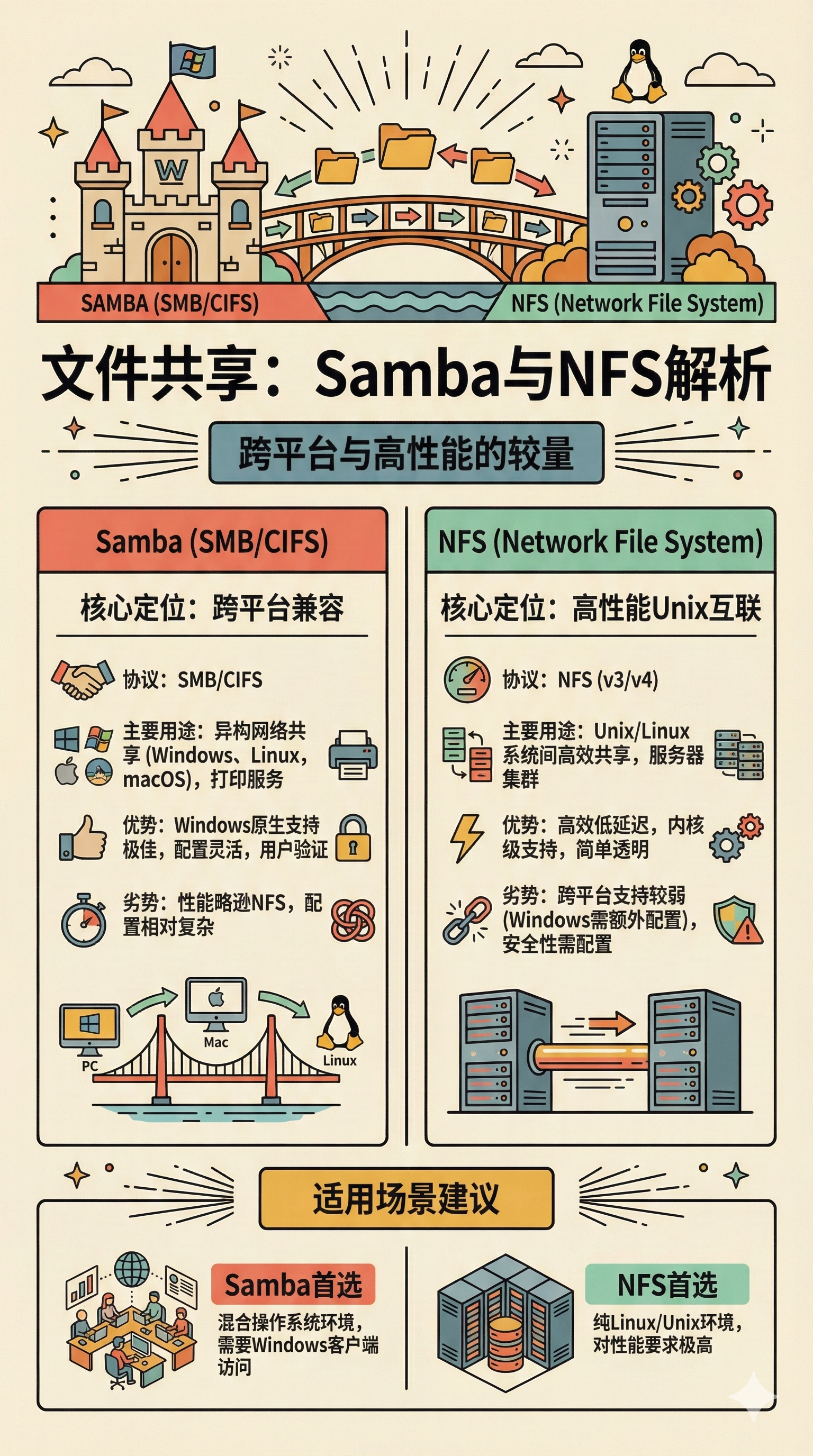 Samba是一个在Linux/Unix系统上实现SMB/CIFS协议的免费软件,通过它可以在不同操作系统之间共享文件和打印机。本实验将带你学习如何在Linux系统上配置Samba服务,实现与Windows系统的文件共享,让你掌握跨平台文件共享的配置技巧。
