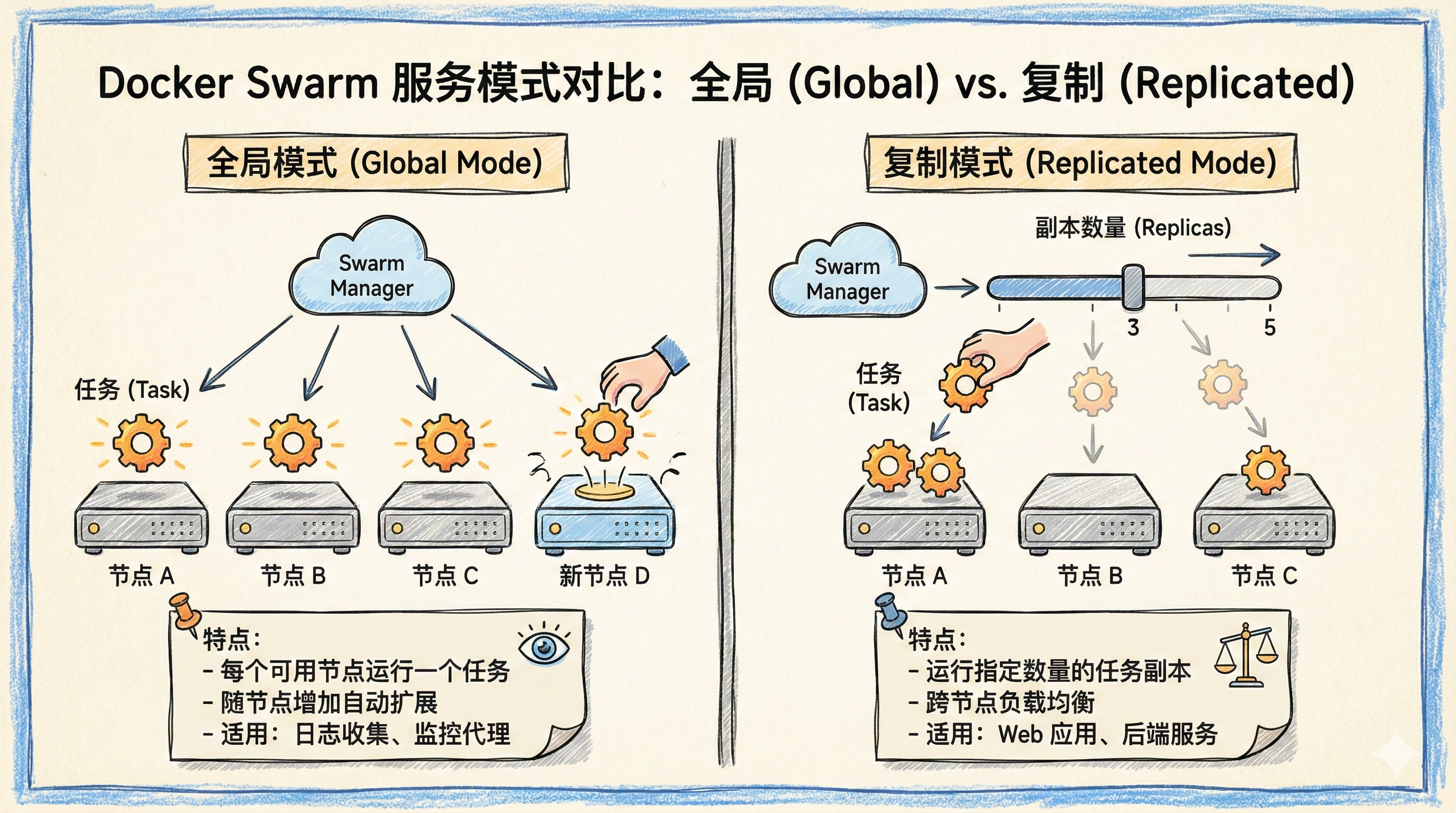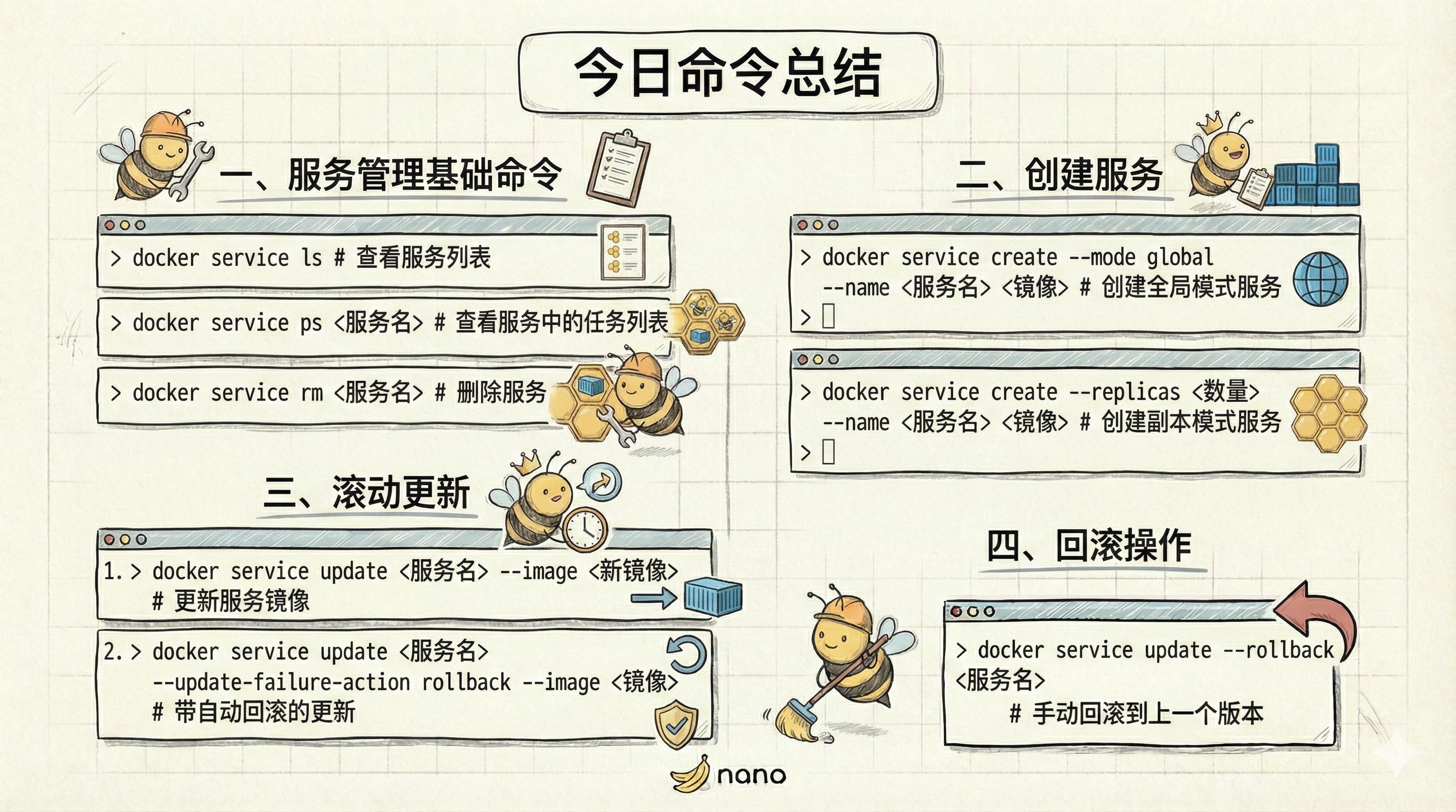 --update-failure-action rollback参数,让 Swarm 在检测到更新失败时自动回滚。 - 手动回滚:如何使用